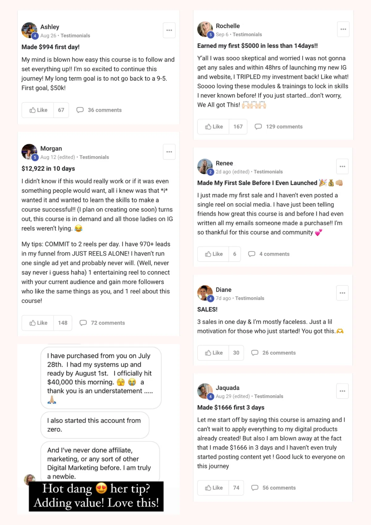 It may take 30 days for you to see financial results, but over the next 30 days you will learn how to grow an engaged following and build an email list of hungry buyers!